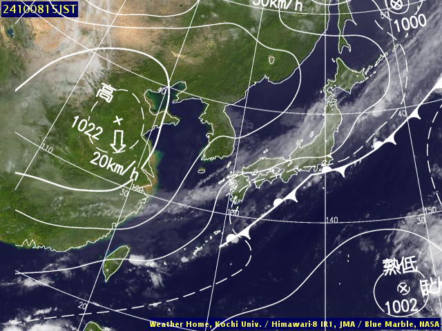 | 地上(高知大学気象情報頁赤外画像と気象庁速報天気図を合成) | |||