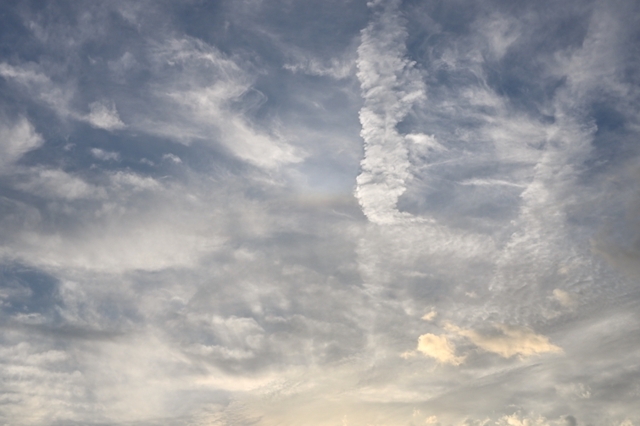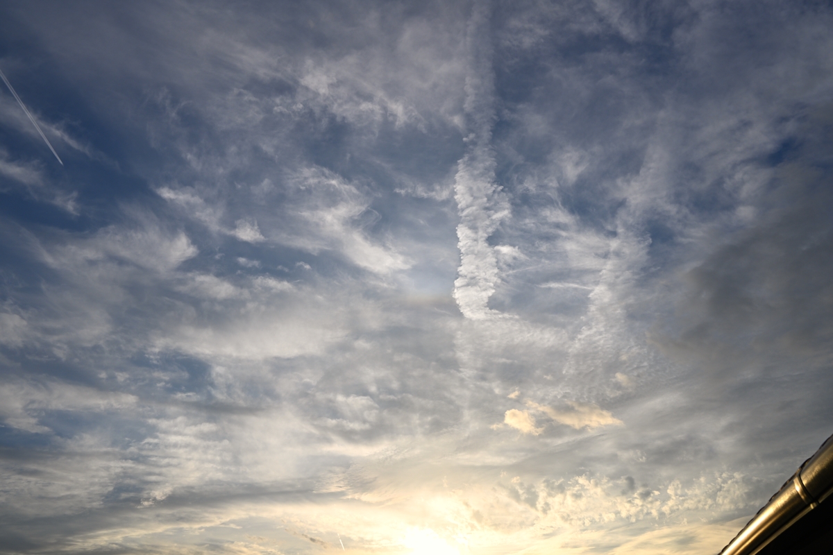 前線が通過して天気は回復傾向。夕方には巻層雲の広がる様子が