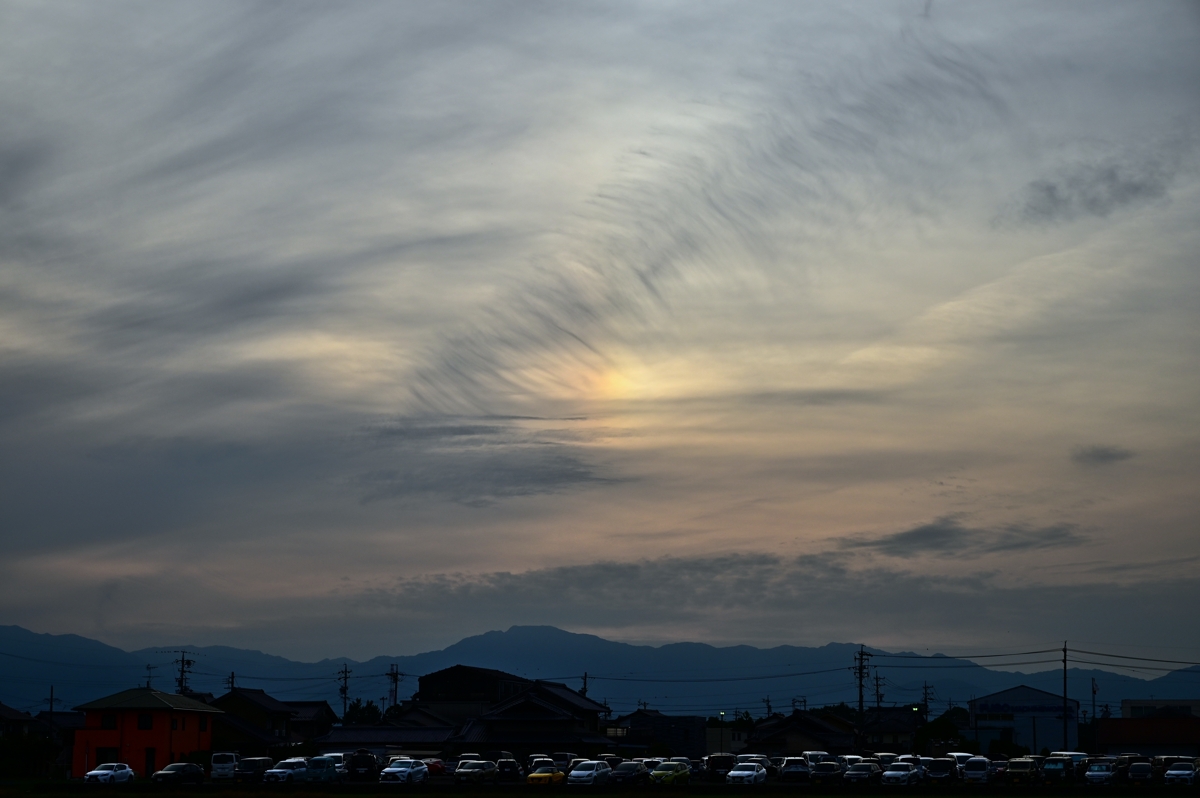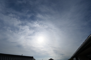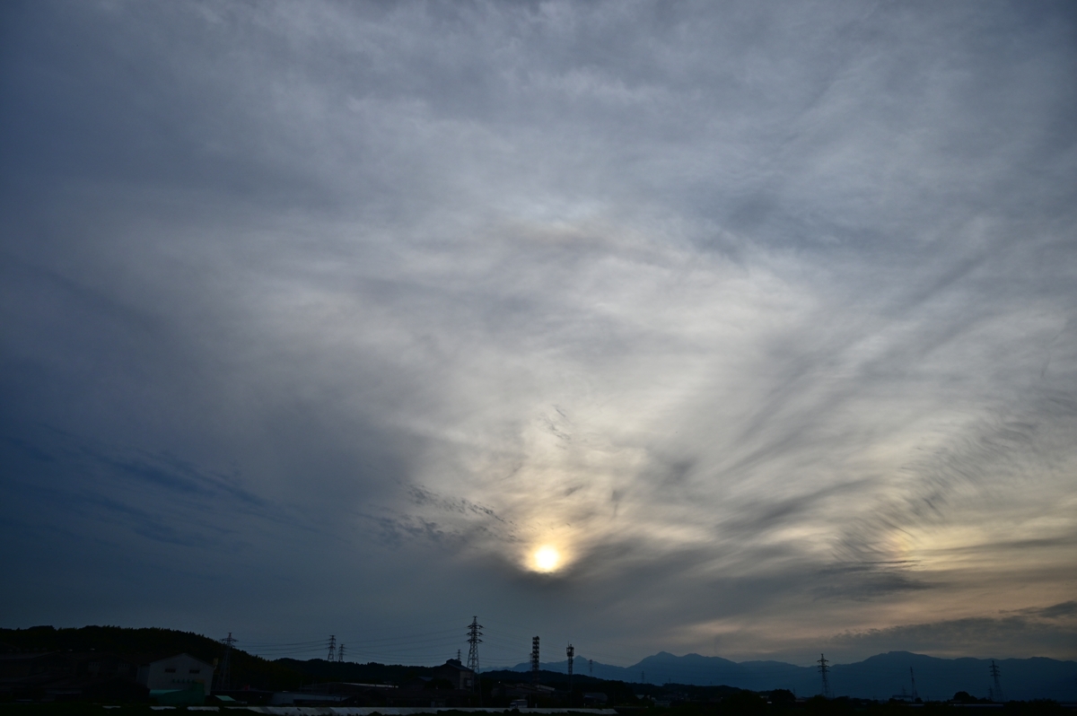 午前は快晴の空。南に見え始めた巻層雲は午後になると 高層雲をまじえて一気に押し寄せてきました。夕方には、 ハロや幻日、タンジェントアークがときどき現れました。 南からの湿った空気が入っており、桑名の最高気温は29.9℃。 三重県では、未明には雷雨となるところもある予想です。 |