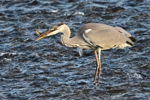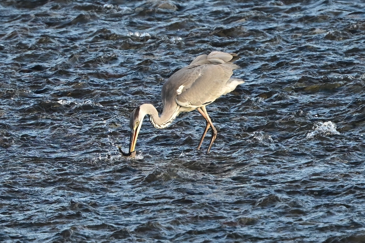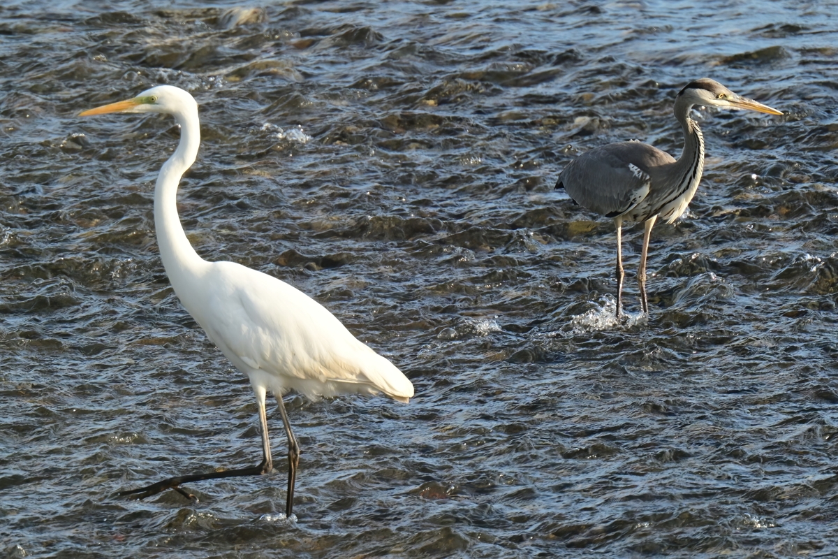 アユらしき魚を狙ってか、ダイサギ9羽とアオサギ2羽が