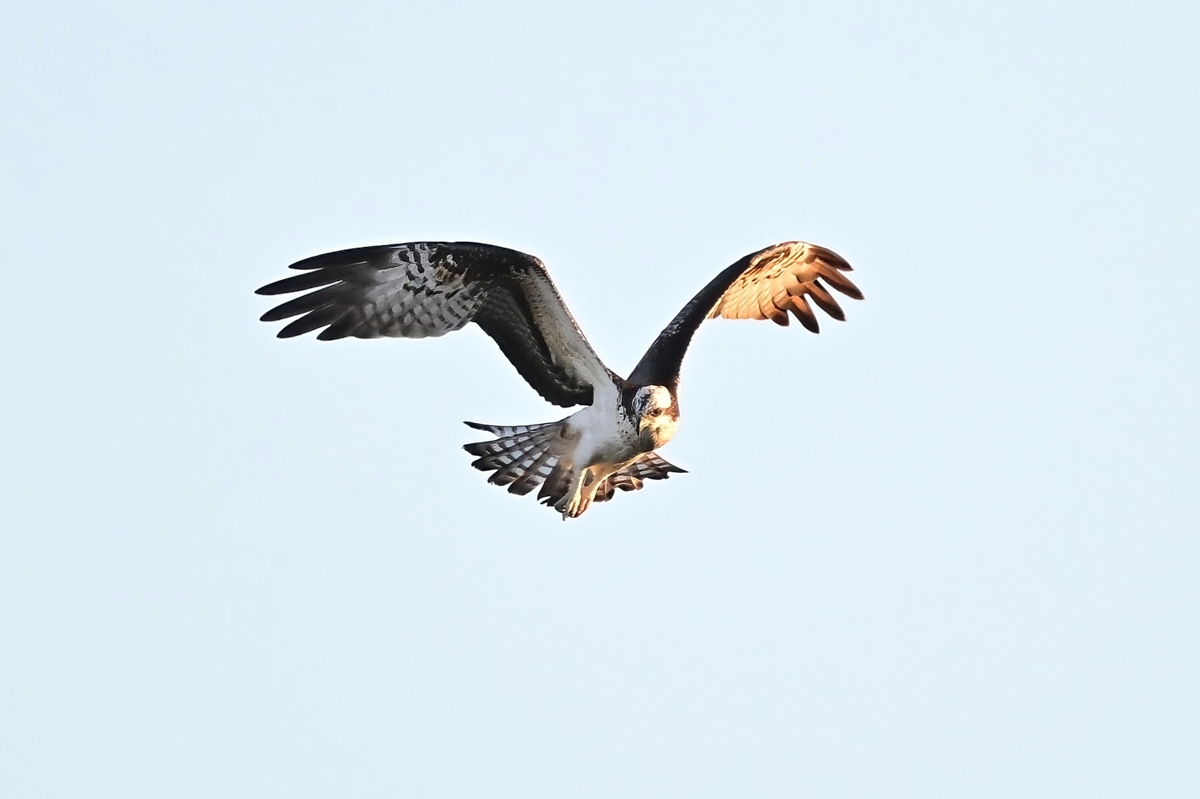 北西風に向かって飛んできた来たミサゴが風を利用してのホバリング。