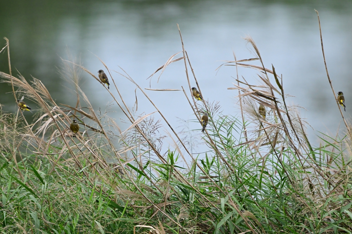 カワラヒワの群れ | ||