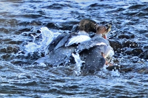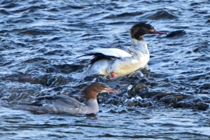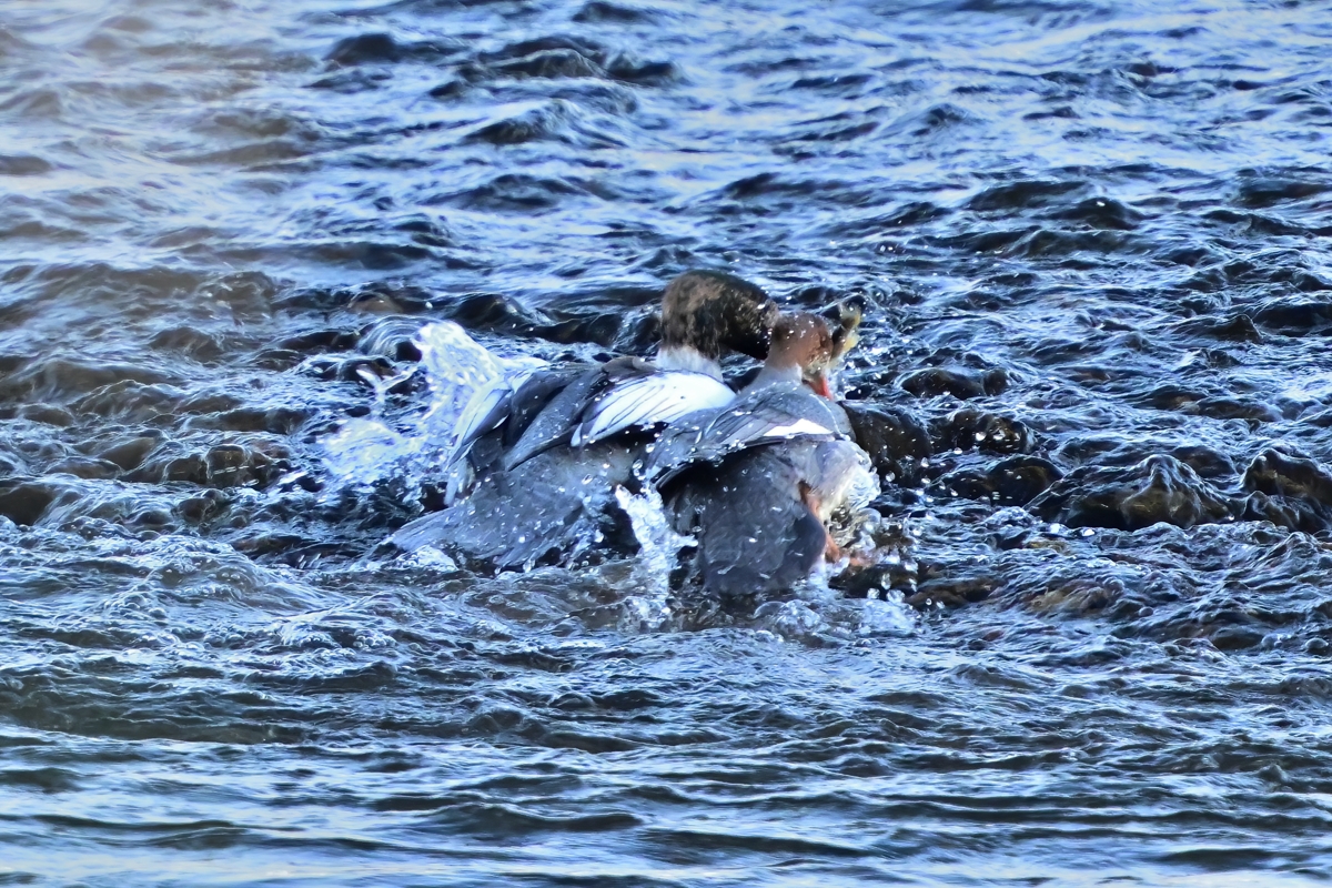| 餌を争う? | カワアイサ(オス・メス) | ||