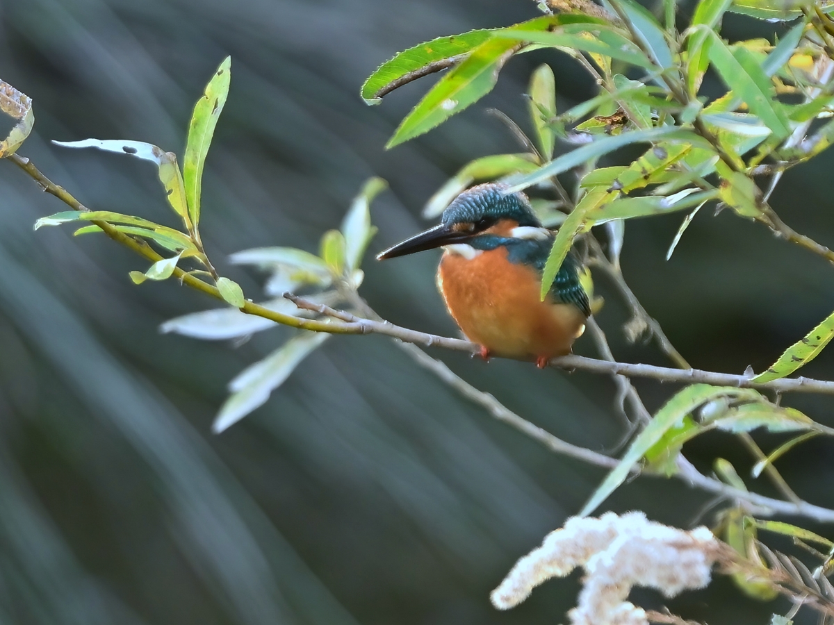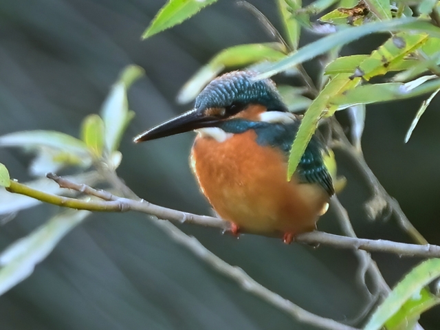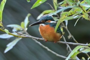 | 夕方の員弁川。 日没前に川岸の樹木に姿を見せたカワセミです。 逆光の光線状態で輪郭がふわりと明るく浮かび上がっています。 ほかにはモズ(オス)が長い時間、堤防上の樹木に留まっていました。 川の水位は平常時にもどり、ここ数日、多く見られた水鳥たちも減少。 それでも、日没後に数羽のカワアイサが見られました。 |