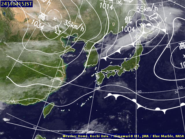 (高知大学気象情報頁赤外画像と気象庁速報天気図を合成)