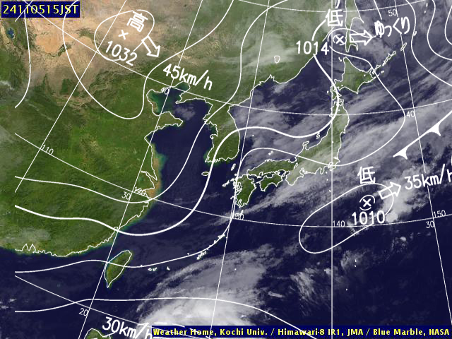 | 地上(高知大学気象情報頁赤外画像と気象庁速報天気図を合成) | |||