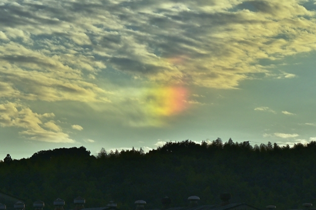 東に去った前線の延長線が南岸にかかりその雲域におおわれた 曇りの天気でしたが、この雲域が去った夕方、すばらしい高積雲 が広がりました。高積雲の上には巻積雲の重なっていたり、山麓 には層積雲やそのレンズ雲もあらわれました。また、上層には 明瞭な巻雲や巻層雲は無かったものの、青空や高積雲の上に ある氷晶に、美しい幻日も何度か見られました。 |