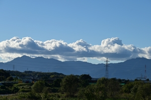 低気圧と前線が東に去り、大陸起源の高気圧が はりだしてゆるやかな西高東低の気圧配置に。 鈴鹿山脈には迫力のある積雲が連なりました。 |