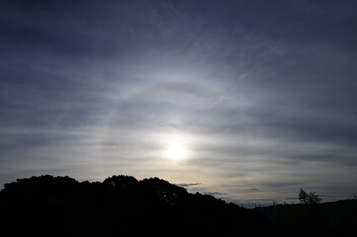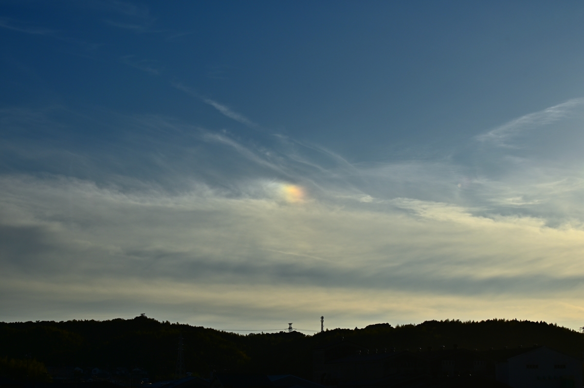 昨日は札幌で積雪、各地の山岳で初冠雪も。 大陸起源の高気圧により、冷たい空気に覆われましたが、 晴天による日射で日中は暖かさも。 朝焼けの巻層雲が南からおおってきて、朝は22°ハロが 継続。昼頃にいったん層積雲の空になりましたが再び晴れて 夕方には再び巻層雲が来て、美しい幻日があらわれました、 |