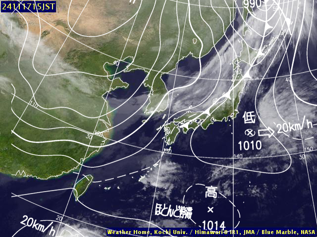 (高知大学気象情報頁赤外画像と気象庁速報天気図を合成)