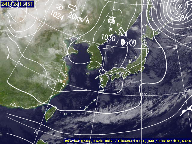 | 地上(高知大学気象情報頁赤外画像と気象庁速報天気図を合成) | |||