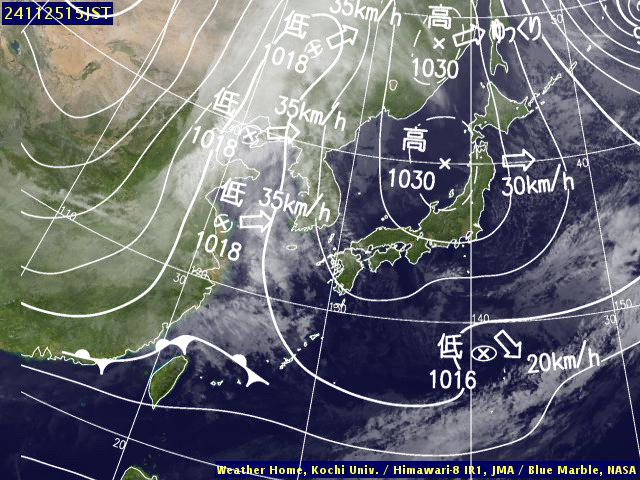 (高知大学気象情報頁赤外画像と気象庁速報天気図を合成)