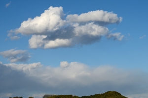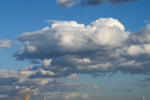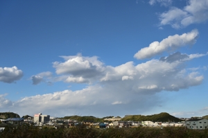 寒気流入が進み、雪の降水でけぶった積雲や層積雲がたくさん。 日中は日差しが暖かく感じられますが、空はもう冬の装いです。 |