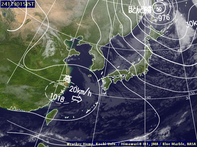 (高知大学気象情報頁赤外画像と気象庁速報天気図を合成)