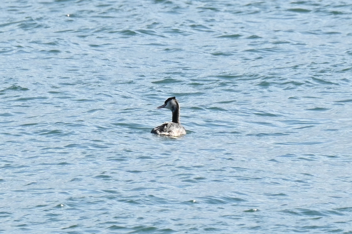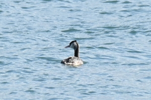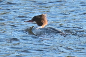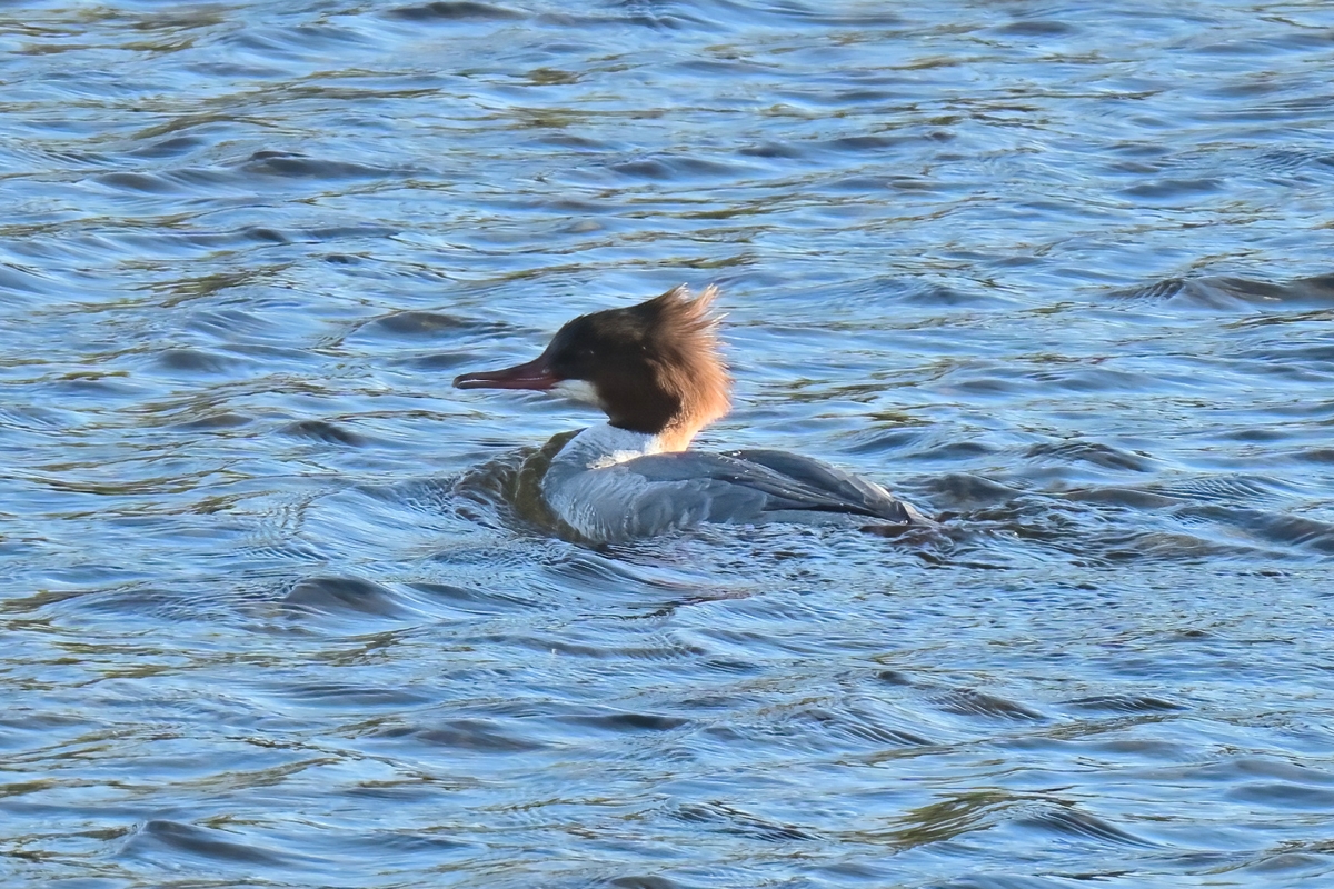 | 遠方にカンムリカイツブリ | 夕方、員弁川 カワアイサ(メス) |