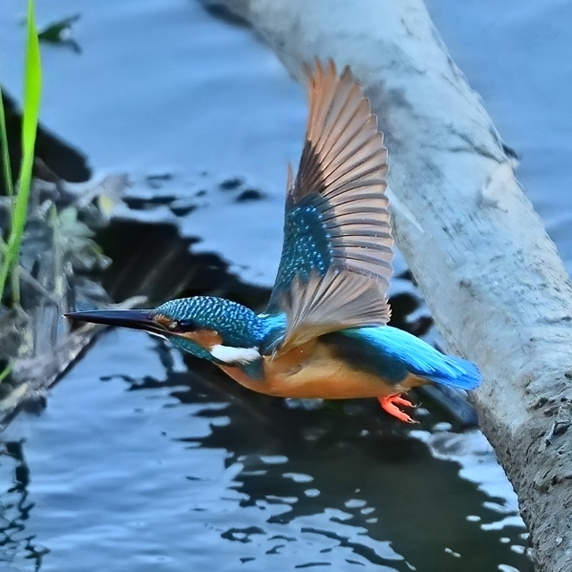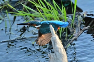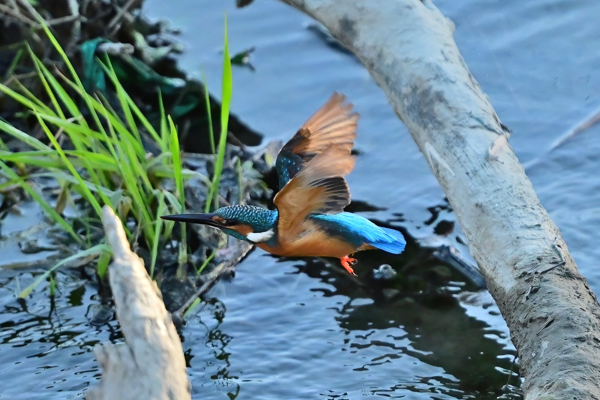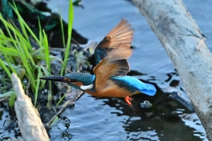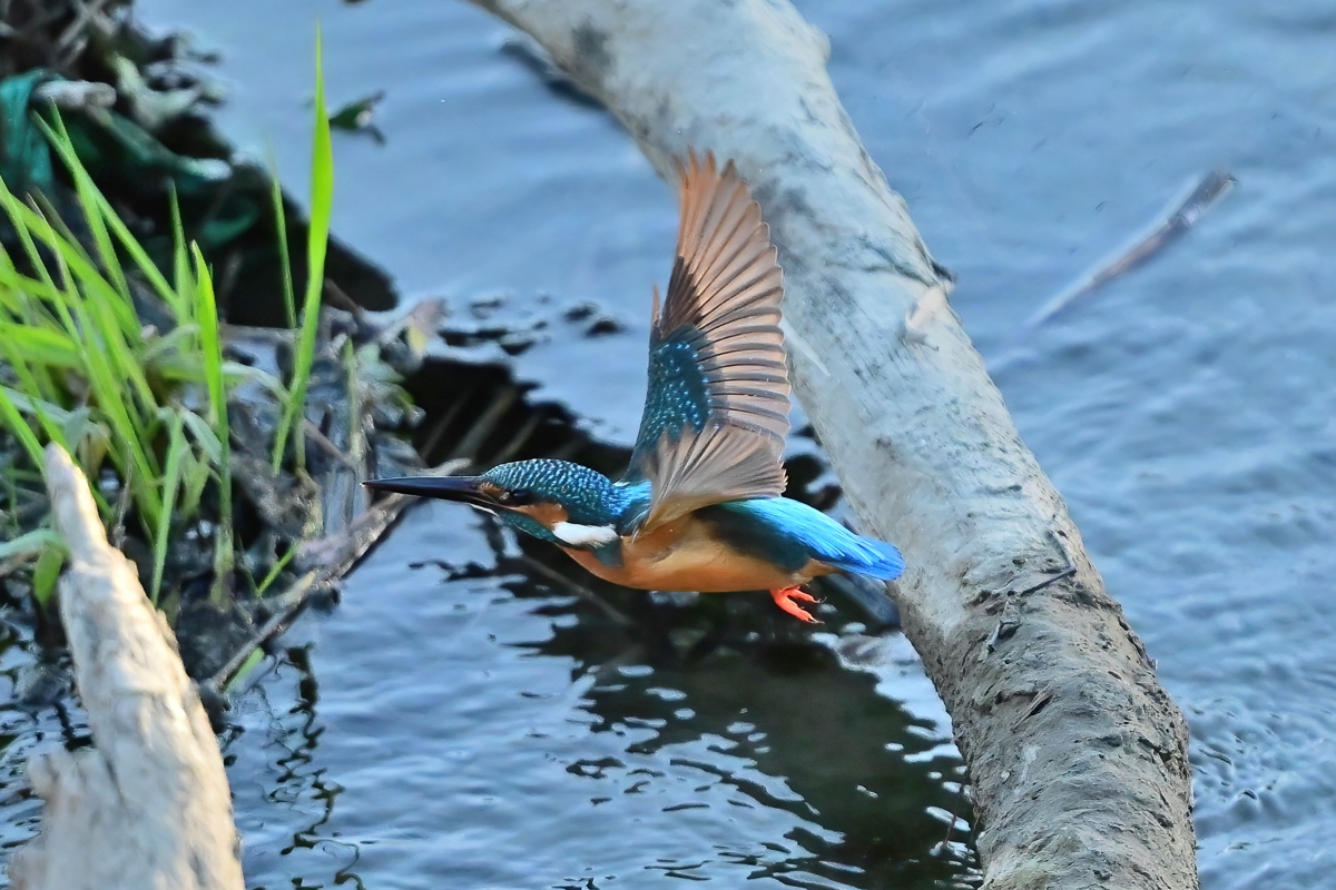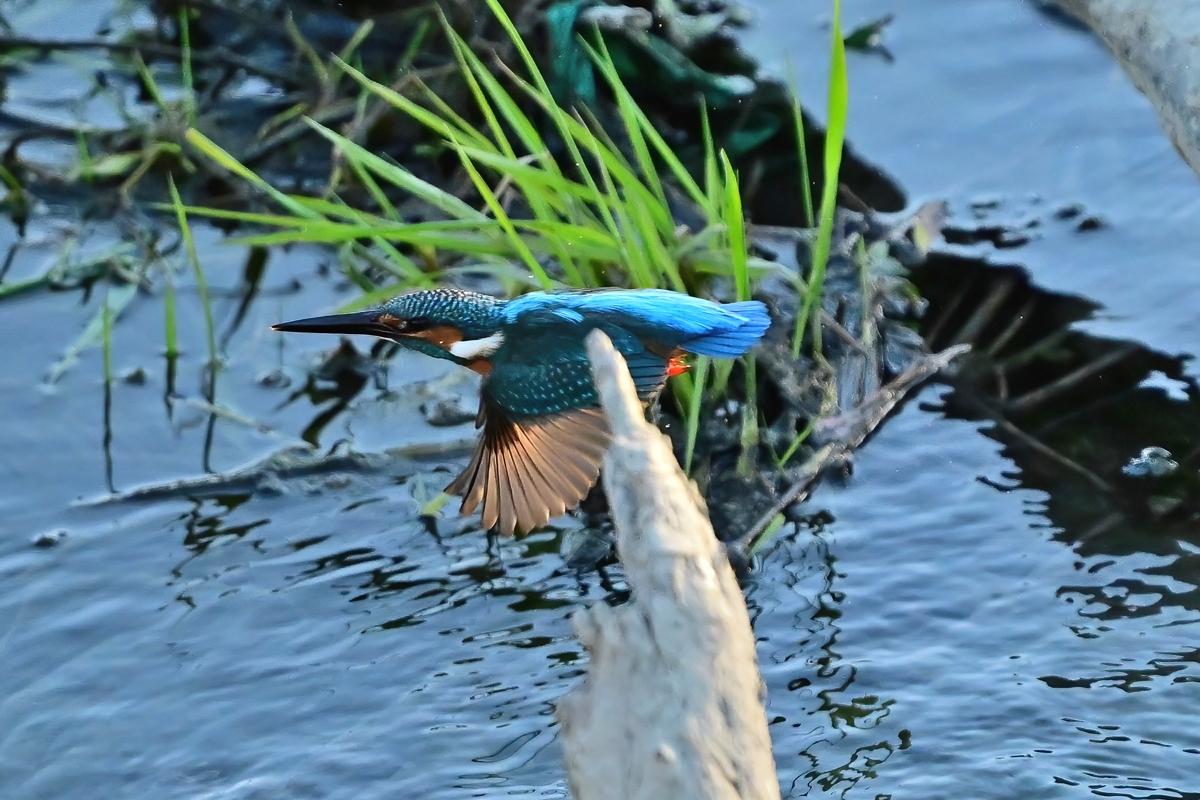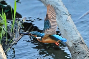 夕方の員弁川。今日も昨日とほぼ同じく16時ころにカワセミ。 日差しは残っているものの、既に陰に入ってしまっています。 このポイントにとどまる時間はいつもとても短いので、飛翔のみ を狙って、1/3000秒・f2.8で30コマ/秒連射。(ISOは2500。) 設定を変えている間にも飛び立ってしまうのでレリーズから 絶対に指を離してはいけない、というのがここでの原則です。 |