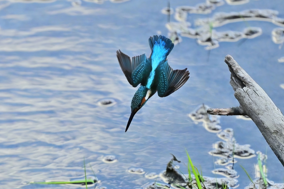 | 川面の枝に留まる | そこから飛び込み | ||