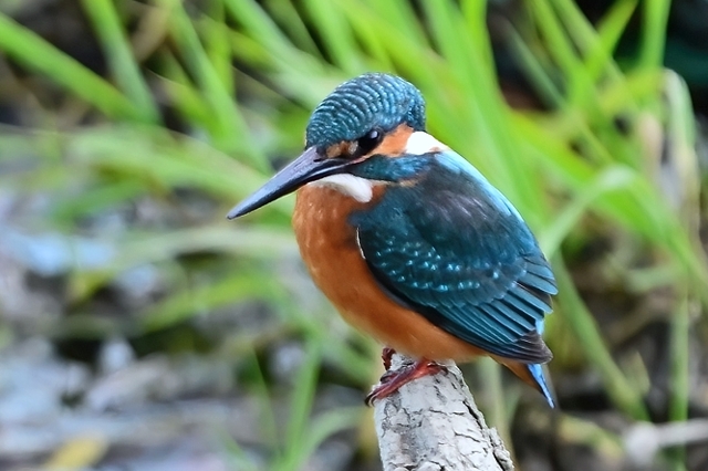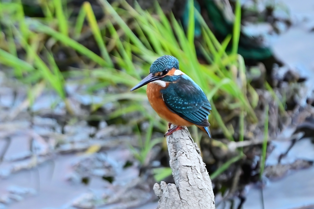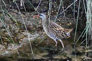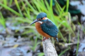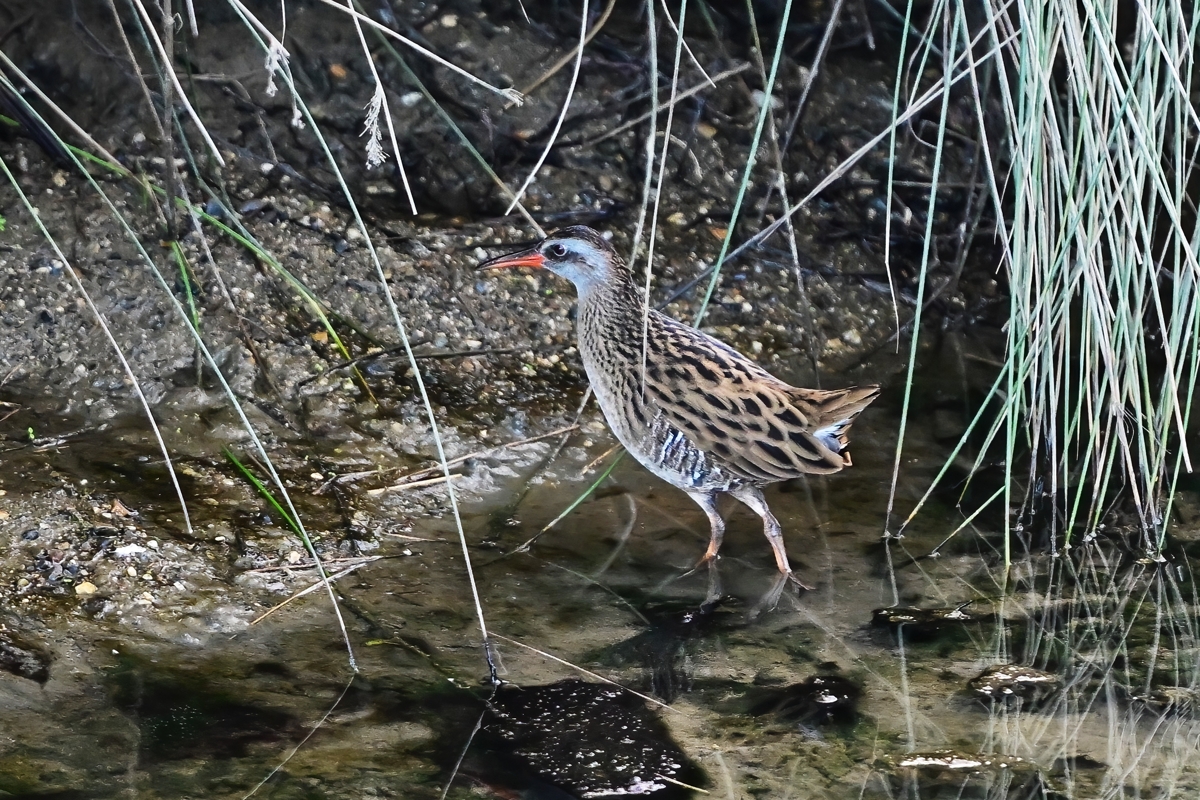 | 夕方の員弁川にて。 山に陽が沈んだあと、あいついであらわれたのがクイナと カワセミでした。この場所では今年の9月30日にヒクイナを 見ていますが、今日のはクイナ。本州中部以北で繁殖をし、 この冬に南下してきたものと思われます。赤い嘴に独特の模様。 このところカワセミは、早い時刻に登場する傾向にありましたが 今日は日没。さすがに飛翔は撮れず、留まり姿をじっくりと撮影。 |