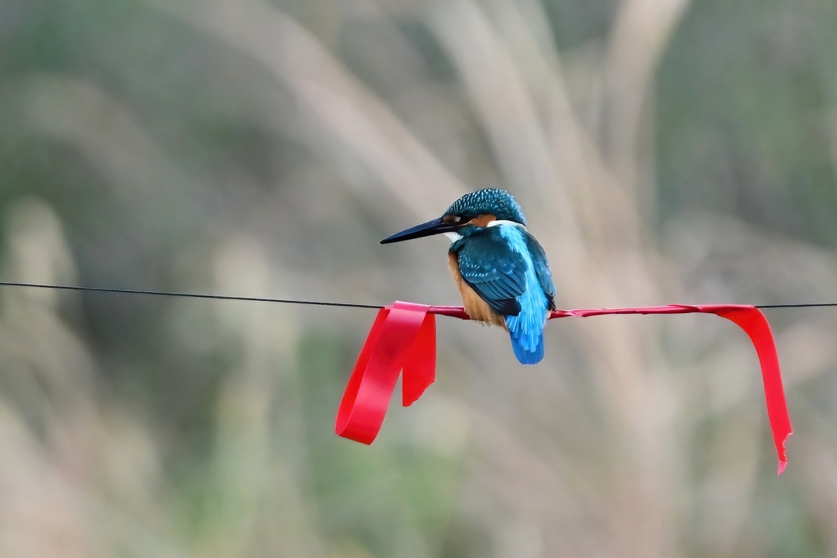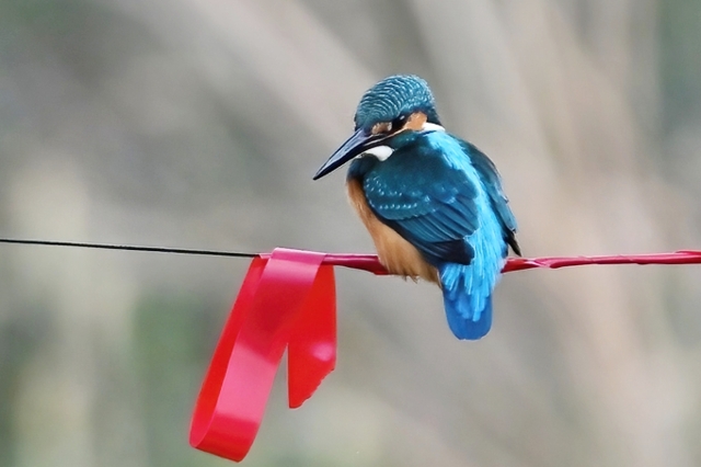 午前、菰野町の森にて。 青いルリビタキ(オス・成鳥)を目撃するも撮影にはいたらず。 紅葉の残る森で、エナガとシジュウカラの混群が近くに来ました。 また、シジュウカラのメスが真っ赤な紅葉の周囲を動き回って おり、赤い背景を生かした撮影をしてみました。 夕方、桑名市の員弁川にて。 カワセミが、狙っているポイントを何往復も素通りしたあと、ようやく 約30mの距離にある、川岸と中州を結ぶ謎のロープに留まりました。 謎の目印の赤いリボンに留まったのですが、リボンがないときには ホバリングをするように接近していたのが、リボンが目安になるのか スムースにランディングしているようでした。人工物ではあるものの、 「赤いリボン」と「青いカワセミ」という、色の対比がとても印象的でした。 |