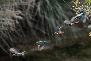 | 0.1秒間隔のストロボ合成 水面へ向かう飛翔 ほぼ逆光。 |