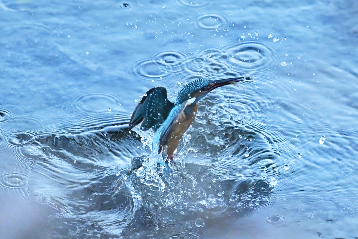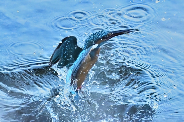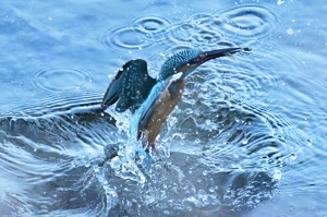 | 「カワセミ、飛び込みから浮上飛翔」(桑名市) | |||