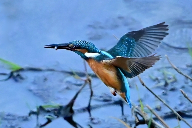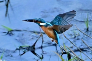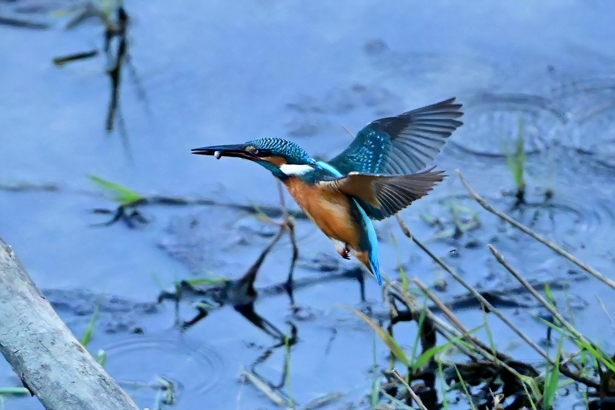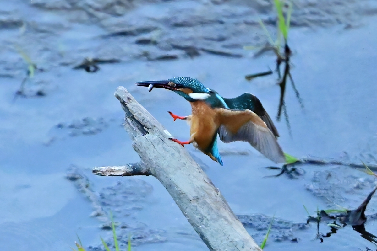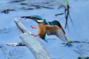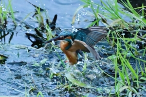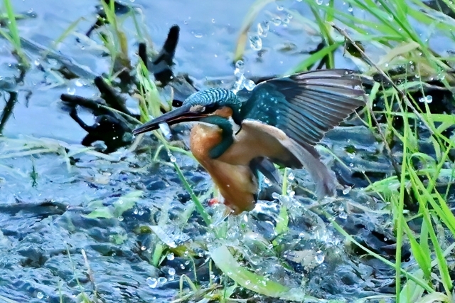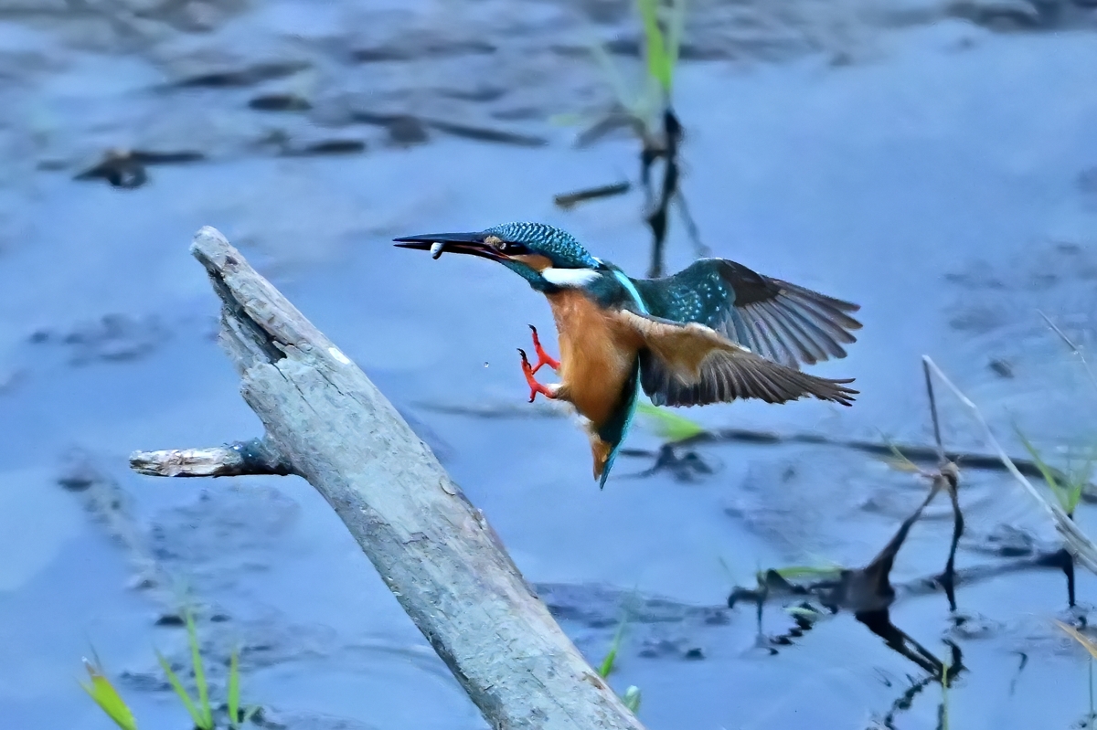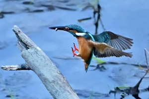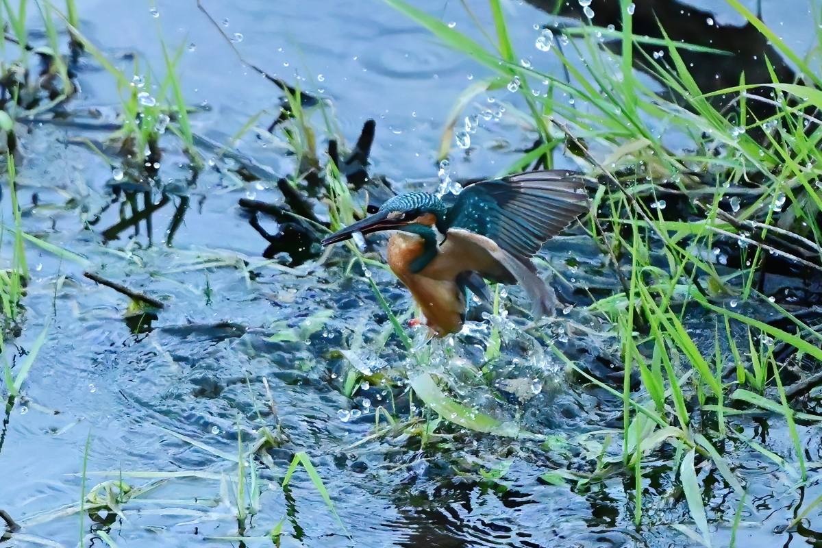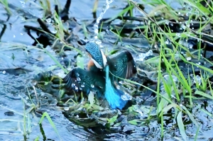 | 「カワセミ、飛び込み後のランディング」(桑名市) | |||
