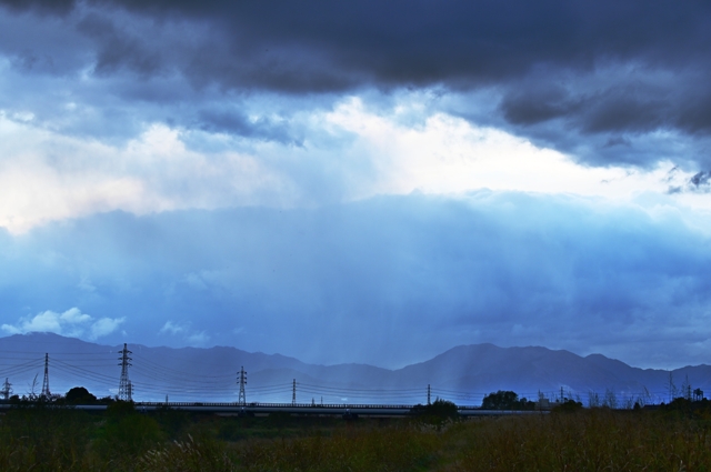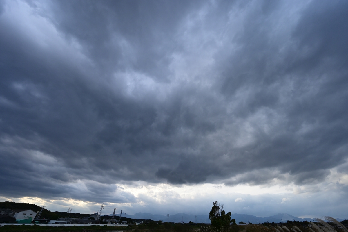 連日、じわじわと寒気が流入し続けて、最低気温は約6℃に なりました。冬の雲がゆるい季節風にのってやってきたり、 山麓で広がったりしています。今日は鈴鹿山脈の山麓に 広がった分厚い層積雲から降水がありました。日射が無く 虹が見えなかったのが残念ですが、美しい降水雲が 長時間にわたって見え続けました。 |