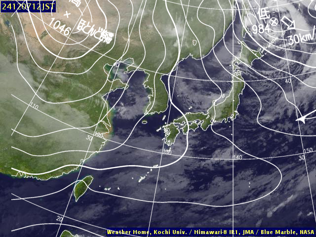 | 地上(高知大学気象情報頁赤外画像と気象庁速報天気図を合成) | |||