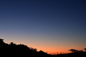 | 今朝の最低気温はついに2.6℃。じわじわと寒気が入り続けた1週間です。 夜明け前の東空は透明度の高い空気感で、濃紺と濃い赤色のグラデー ションがすばらしく、日中は青空の中に積雲列がいくつも発生しました。 |