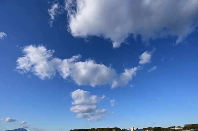 冬型の気圧配置がゆるみ、透明度の高い青空にきれぎれの
