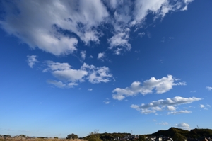 積雲列が流れ来る空。これらの雲も、夕方にはすっかり