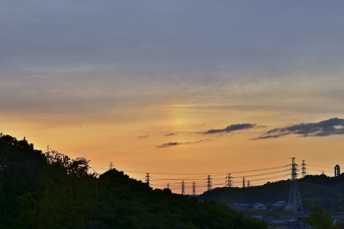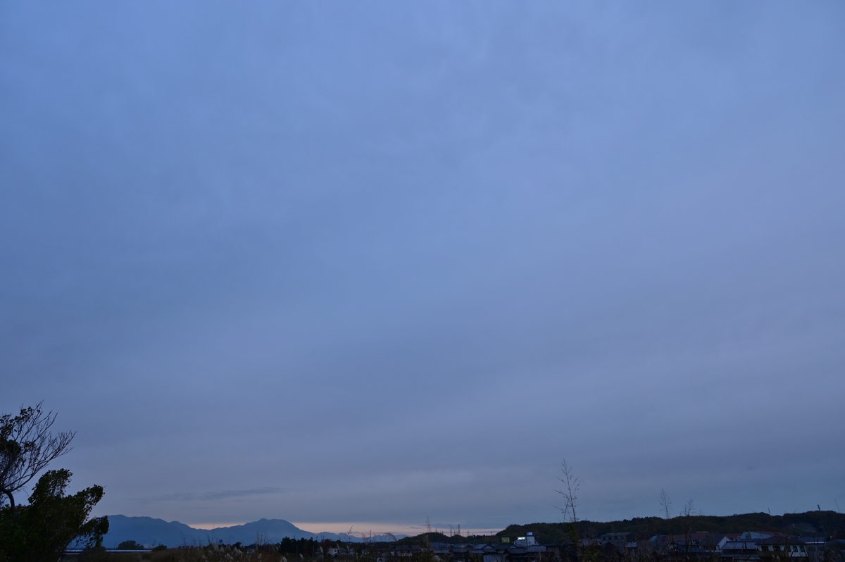 西高東低の気圧配置の中で、日本海と南岸に小低気圧が発生し、 雲の多い天気。日の出前には巻層雲。日の出の後には高層雲に 覆われましたが、南のほうには巻層雲が見えていて、そこに赤みを 帯びた幻日が見られました。その後、巻積雲や巻層雲、高層雲など がやってきましたが、おおむねは高層雲の曇り空。夕方には乱層 雲に近い状態になってきており、夜には雨のところもありそうです。 |