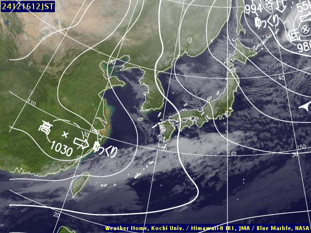 | 地上(高知大学気象情報頁赤外画像と気象庁速報天気図を合成) | |||