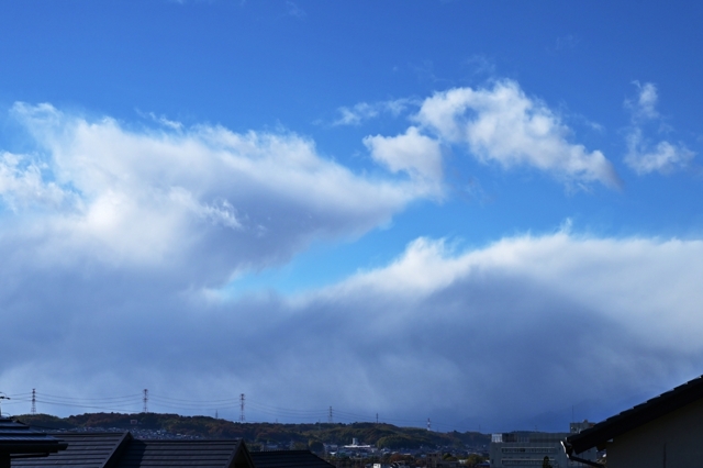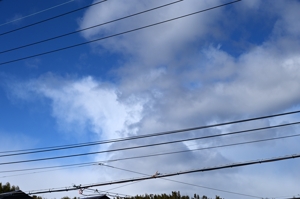 | 12:52 北西 70mmm 奥の雲は乳房雲を付随。 背の低い積乱雲かと思ったが 発雷情報は無し。 |