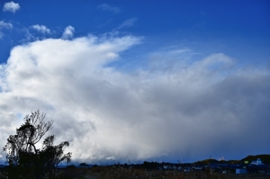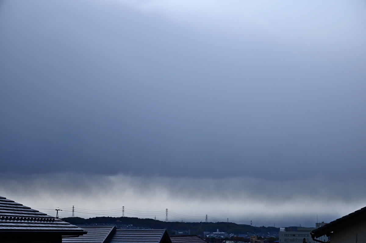 | 日本列島に6本の等圧線(4hPaごと)、衛星画像で日本海の全面 (大陸沿岸付近から)にすじ状の雲、と本格的な冬型気圧配置の 1日になりました。午後には、三重県北部を北西から広がってきた な降水を伴う雲が覆いましたが、地上気温は5℃程度で、降水は 雪ではなく、完全に雨でした。これに伴って、陽が差し込んできた ときには虹が見られました。次の寒波くらいからは、三重県北部 でも雪が降るようになって、虹は見られなくなるかもしれません。 |