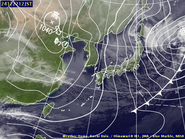 | 地上(高知大学気象情報頁赤外画像と気象庁速報天気図を合成) | |||