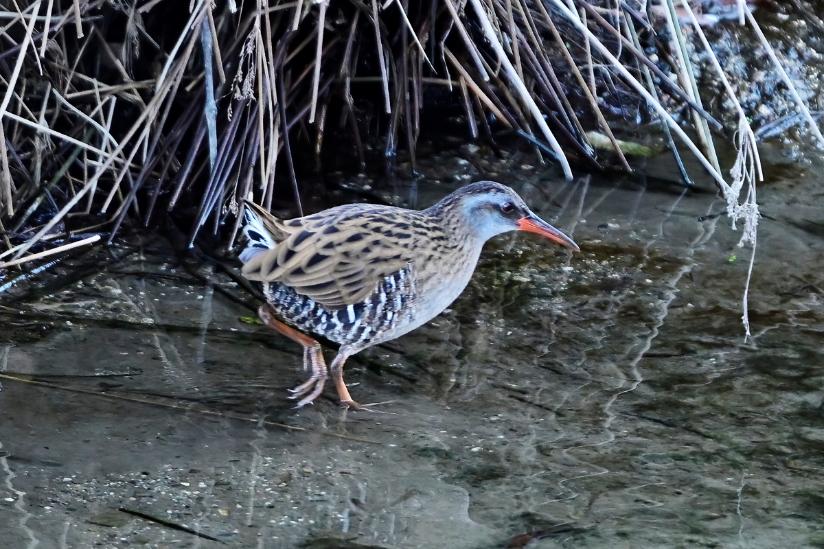 | 午前、菰野町の森にてルリビタキ。青いオス成鳥には出会えず。 夕方、員弁川にて。 カワセミの飛ぶ姿はありましたが、撮れる場所にはあらわれず。 今日はセグロセキレイが3〜4羽、頻繁に浅瀬にやってきて何か をついばんでいました。そうしたところへモズが追い払いにかか るシーンが何度も繰り返し見られました。 日没前の暗くなり始めた16時20分頃、日陰の暗い浅瀬を走る クイナを発見。茂みの近くに来ると走る速度を落として忍び足 に変わりました。12月17日に見たのと同じ場所で、このあたり で冬を越すのかどうか、注目したいところです。 そして、日没から30分も経った17時20分頃、タシギがよどみ にやってきて何かをついばみ始めました。肉眼では鳥なのか どうかもわからぬ暗さでしたがスローシャッターで撮影。嘴を 上げた姿で静止することは少なく、とんでもない枚数の連写 をして、被写体ブレのないカットを選択しました。 |