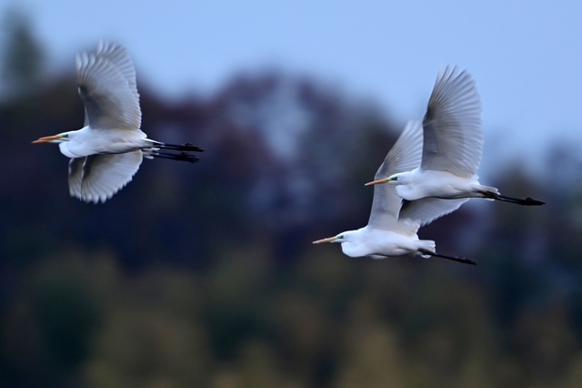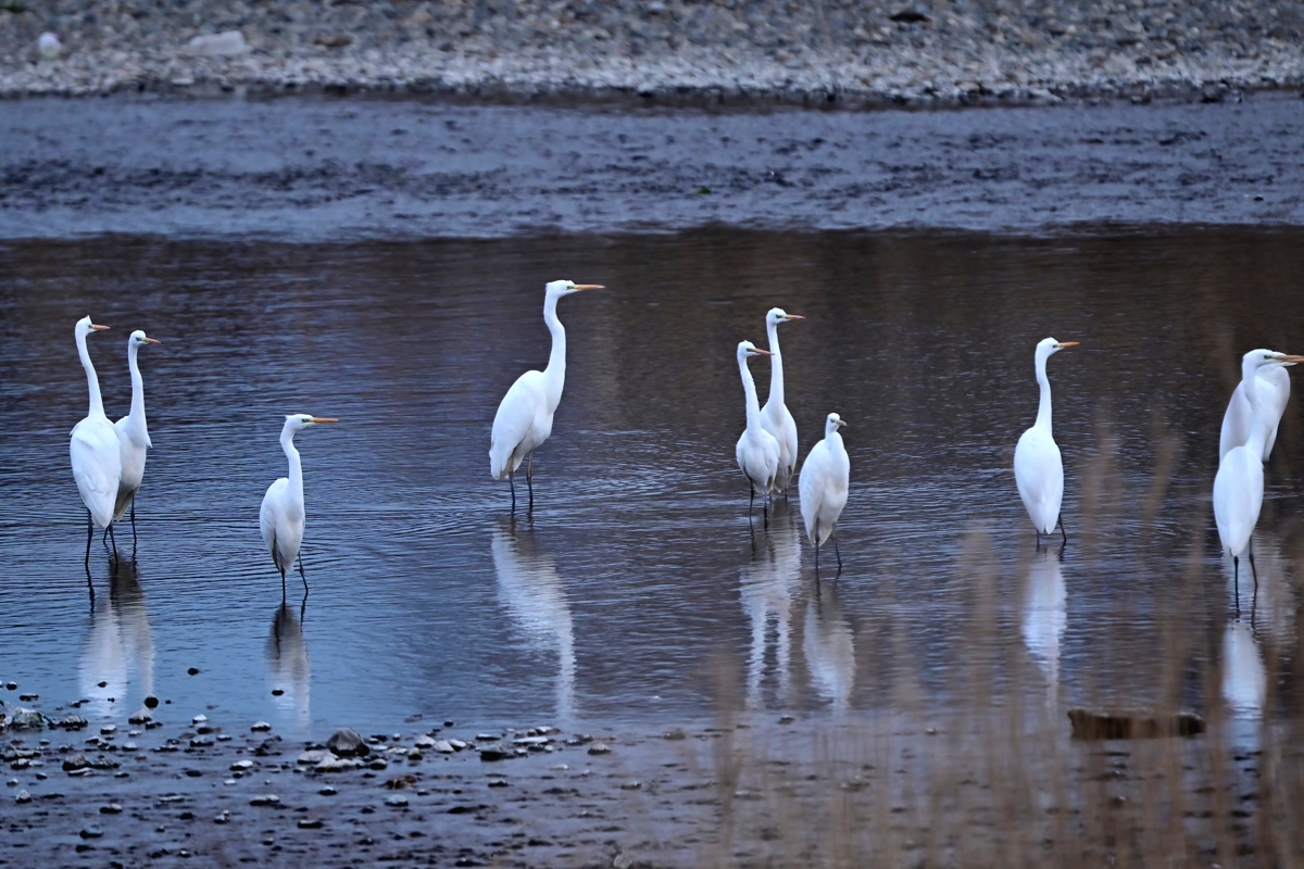 | ダイサギ飛翔 | ダイサギの群れ 総数25羽 |