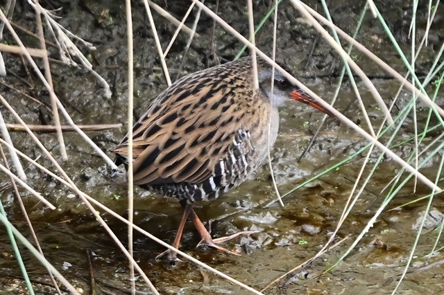 冬晴れの、夕方の員弁川にて。 連日飛び回るモズ(メス)が正面に来て、飛翔を撮影。オスの飛翔は何度か 撮影(2023年12月23日など)していますがメスは初めてだと思います。飛翔の 特徴に特にちがいはなさそうです。 クイナは今季4回目。水辺の草陰を走るので意外に難しい撮影になります。 そして、今日は対岸に、カワアイサとダイサギ(たぶん)の大集団が来ました。 カワアイサはもとから泳いでいた群れに、飛んできた群れが合流したかたち。 総個体数は22羽で、うちオスが16羽、メスが6羽。(2回数えました) 日没前になるといっせいに下流方向へ飛び去るのも見られました。 ダイサギは総個体数が25羽。ときどき10羽以上が舞い上がっては 降りてくる、ということを繰り返していて、なかなかの壮観でした。 カワセミは声が何度も聞かれて、手前岸の見えないところで活動。 飛び込み音も何度かあり。日没後には、岸辺の樹木から下流側へ 飛び去るとき、ようやくその姿を見ることができました(撮影はなし)。 |