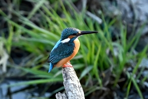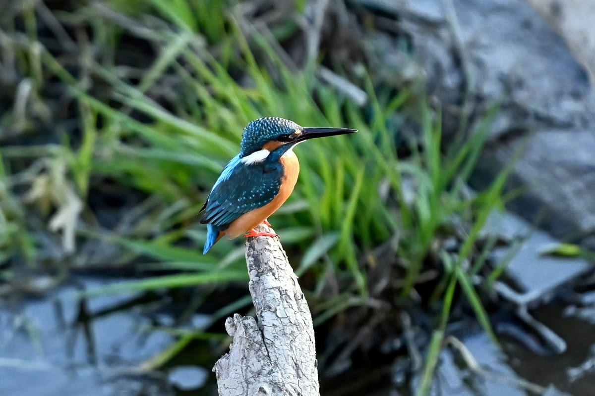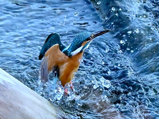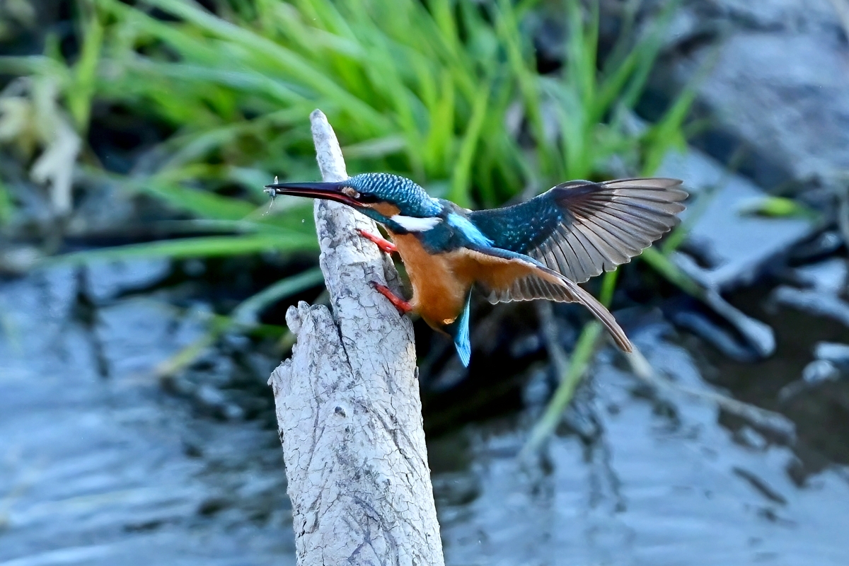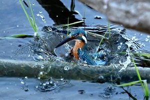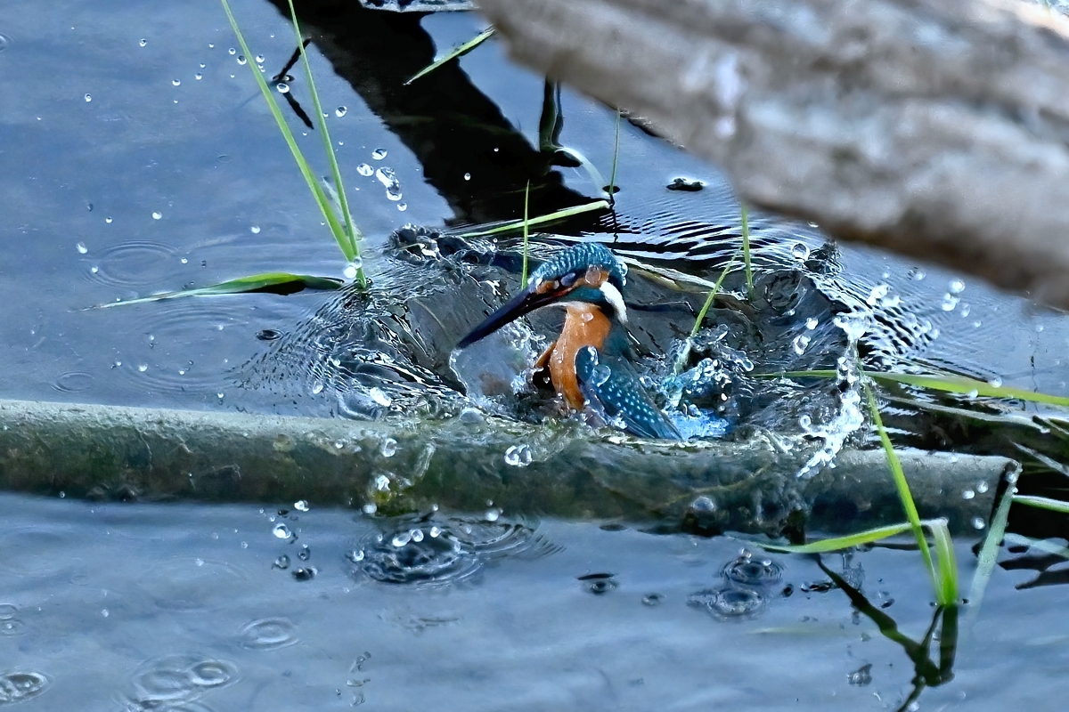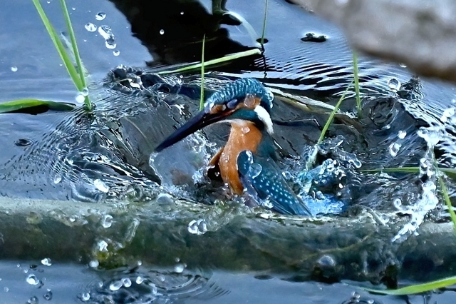 | カワセミ | 倒木の向こう側を飛翔。枝を移る。 | ||