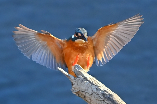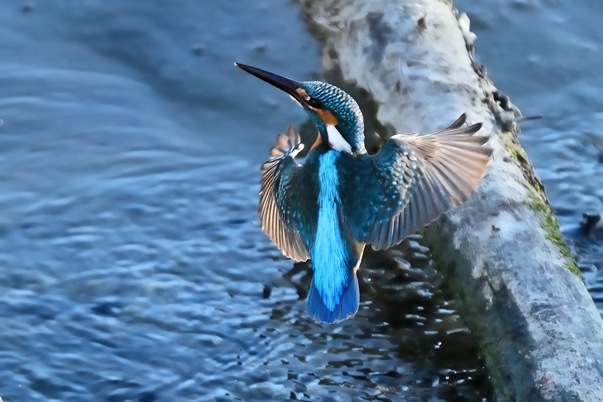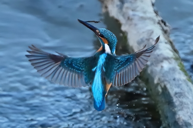 快晴の夕方、員弁川にて。 16時24分、カワセミが川面に突き出た倒木の、観察しやすい場所に登場し、 数回の飛び込みを行いました。数本の倒木の間を縫って飛ぶため、カメラの 合焦機能には頼りつつ、レンズを振り回すことになりますが、フォーカスの方式 選択にいつも迷います。今日は3Dトラッキングを選択して、うまく合焦するカット が多かったようです。直射日光が当たる場合や倒木や草むらの陰に入る場合 も混在するため露出も難しく、カメラ内RAW撮影の現像で調整をしてあります。 カワセミは15時頃、15時50分頃、16時30分頃の3回にわたって登場しました。 最近の観察でも、45分くらいの周期であらわれる感じがあります。餌を捕って 消化する時間との関わりもあるかもしれず、最近は時刻をメモしています。 一方、対岸にあらわれた野鳥(サギ類はのぞく)はおもに双眼鏡(16×50)で 観察し、カイツブリ1羽、カルガモ3羽、カワアイサ(オス2羽、メス1羽)など。 中州の樹木にはツグミもやってきました。 |