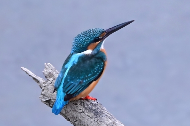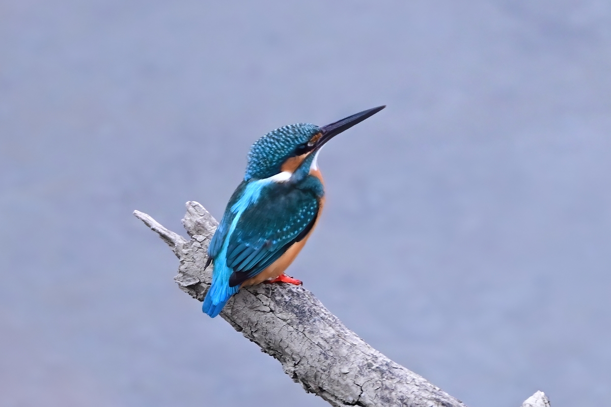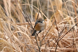 雨の近づく、夕方の員弁川。 中州の対岸付近に、サギ(ダイサギか)24羽、カワアイサ16羽(♂10♀6)、 カワウ4羽からなる、水鳥の大集団ができていました。しばらくいたけれど、 気が付くと一斉に飛び立ち、少し下流の方へ移動して、そこでも同様の 大集団をかたちづくっていました。 モズ(♂)とモズ(♀)を毎日見かけます。オスは堤防の樹木と中州に何度も あらわれ、メスはそこから100mほど離れた広めのエリアに出没し、セグロ セキレイやツグミ、ホオジロなどを頻繁に追い払いにかかります。 少し下流側まで歩くと、アオジらしき鳥。よく見る鳥ですが、昨年まで ここでは見ていないと思います。 モズの留まる樹木には、ノスリが2回留まりました。 カワセミは、3回ほど飛翔通過をし、3回目は川岸の気の陰から 飛び立つところが見えたので、追尾しながら一応撮影しました。 暗すぎる条件でしたが、静かな水面に姿を映しながらの飛翔です。 さらにカワセミは、日没後の17時30分頃に、いつもと同じ、水面に 突き出た倒木付近にあらわれて、(おそらく)1日の最後の食事。 エビを捕獲していました。 |