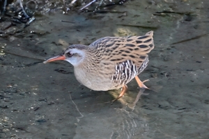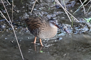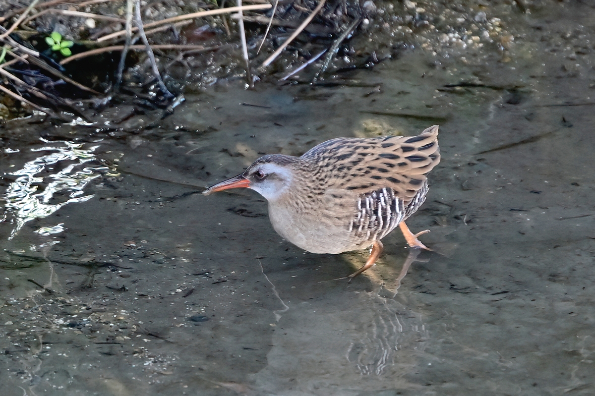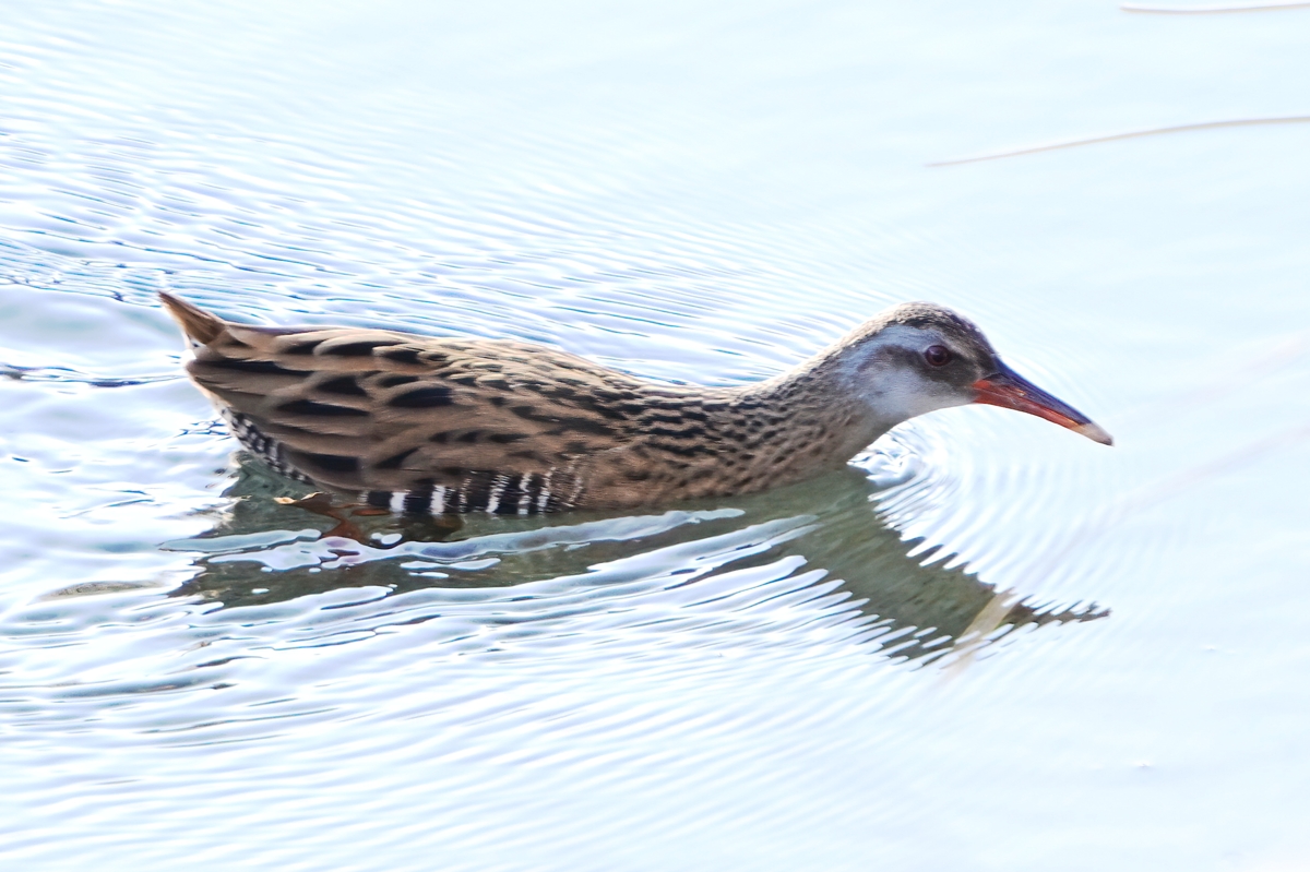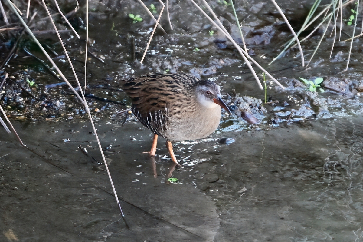 昼前に時間ができて菰野町の森をウォーーキング。 シジュウカラとエナガを美しく撮影できました。 夕方は桑名市の員弁川にて。 今日もクイナがいました。6度目の目撃ですが、すべて同じ場所です。 このあと、約30m離れたまったく違う場所で走ってくさむらに隠れたので、 出てくるのを注意して観察したところ、やはり開けた場所はダッシュして、 隠れられる場所にはいると、ゆっくりと忍び足で移動をしていきました。 カワセミは川岸の樹木にメス(たぶん)が留まり、枝に隠れた場所で 水面への飛び込みをしていました。(下嘴が赤いのでメスかなと思うが、 強逆光なので透けて赤く見えている可能性もありえるかもしれない) そこへもう1羽のカワセミが飛んできてメスはそれを追い払うかのように 飛び立ち、両者は連れだってかなり遠くへ飛び去って行きました。 数分後に1羽がもどってきたのですが、これはオス。その後はしばらく オスのカワセミが水面へ何度も飛び込みました。ほとんどが見えない 場所でしたが、あきらめずに撮影をしていると、枝に向かって上昇する 途中で短時間のホバリングシーンをとらえられました。留まる枝を探して いるように見受けられました。(太陽光をまともに反射した明るい水面を 背景にした逆光で、撮影の設定では強アンダーでしたが、RAW現像で プラス補正・ピクチャーNLにし、その後、カワセミのコントラストを回復) 日没後、いつものように最後の1回でカワセミが戻ってくるかと待ちましたが 今日はこのルーティーンはありませんでした。 |