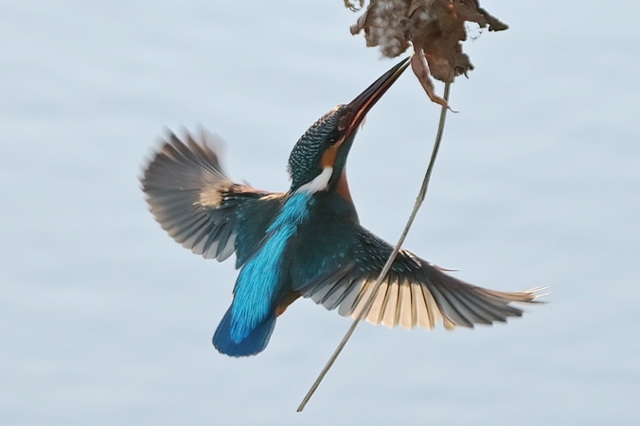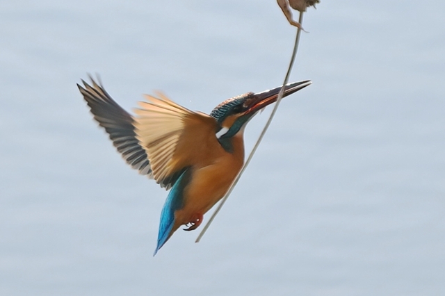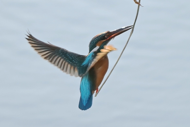 | 飛び込みからの帰還の途中、 留まる場所を探してホバリング。 |