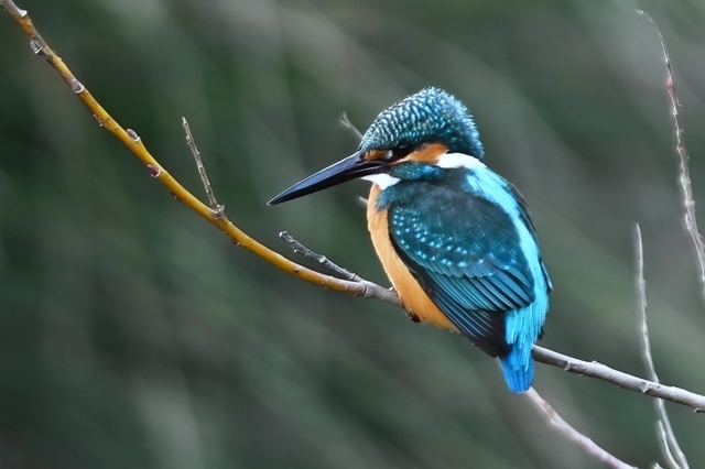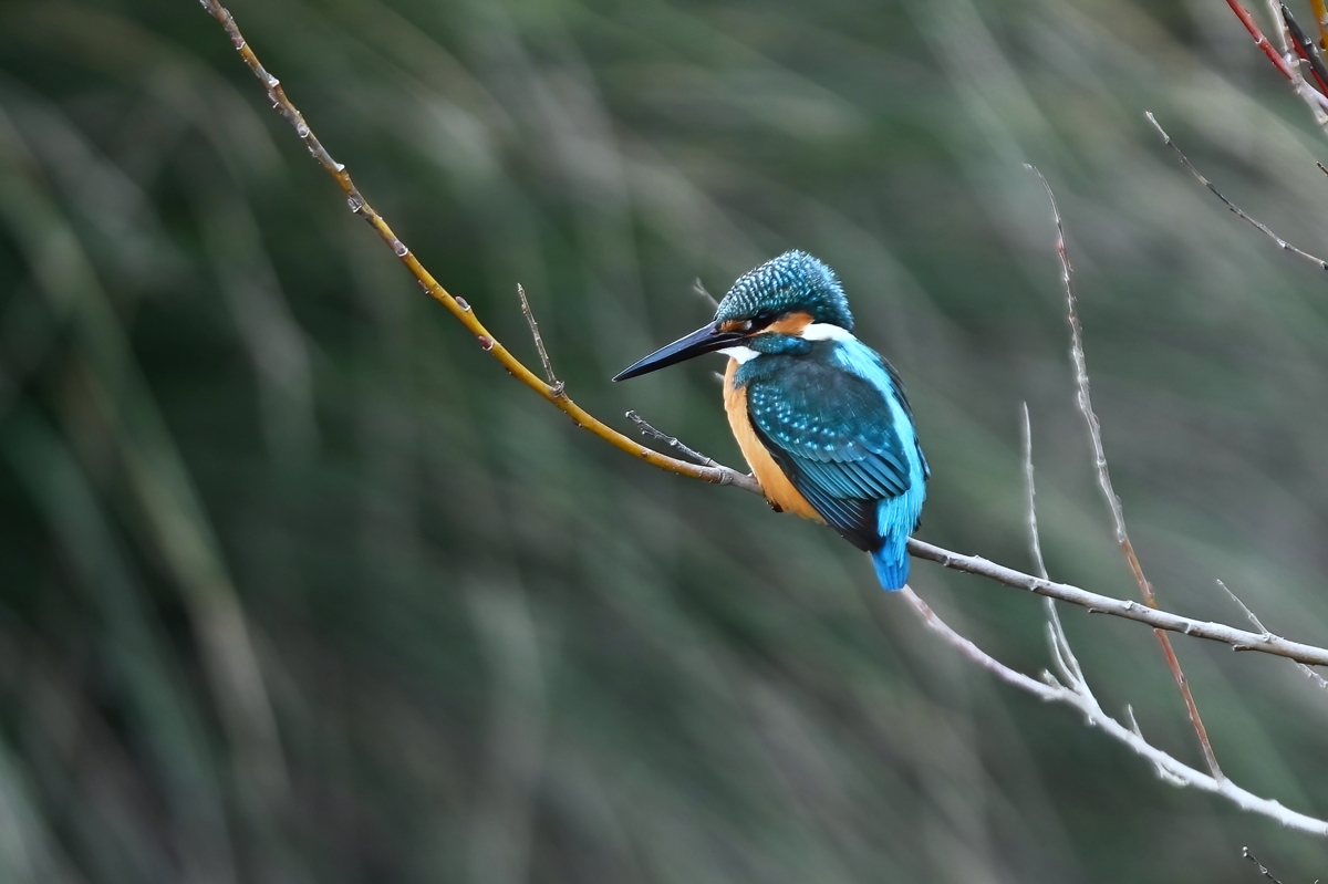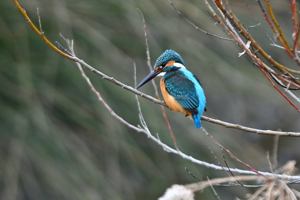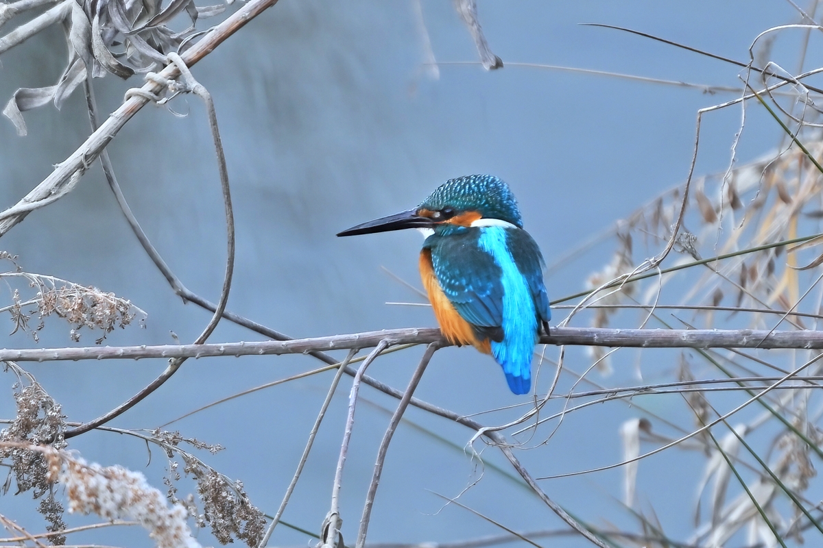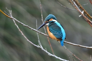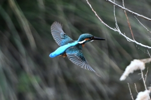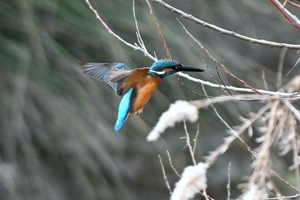 夕方の員弁川。冷たい風に冷たい小雨。 カワセミは川岸の樹木付近で活発に活動。 飛び込みは見えない場所がほとんど。 飛び出してすぐに戻ってくるというシーンが 2回ありました。 |