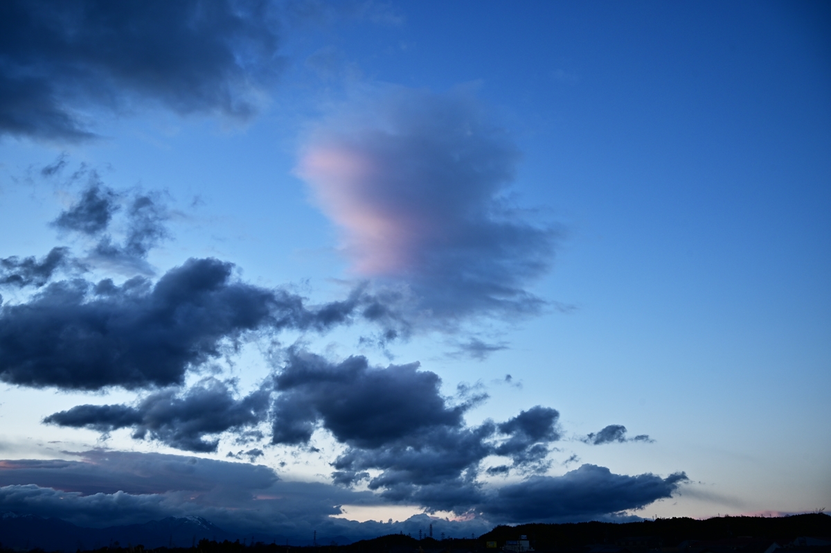 赤く浮かび上がるつるし雲 16:53 西北西 33mm |