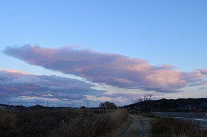 | 衛星画像を見ると、日本海のすじ状の雲は減っている一方で、JPCZが 新潟県のほうへ顕著に向かっており、これによって地上天気図には 低圧部のふくらみができています。JPCZという言葉がまだ無かった頃、 「ふくろ形等圧線」=大雪のサイン、とされていたことを思い出します。 さて、三重県北部には小雨の降水雲が何度も襲来。日中の地上気温は 10℃を越えるレベルで、なかなか雪が降りません。遥か東方、愛知県 方面の降水雲が虹のためにかすかに色づいたのを発見できました。 日没後、下層の積雲や層積雲が消え始めると、赤く夕焼けに染まった つるし雲・レンズ雲がいくつも姿をあらわしました。金星と三日月の ところにも赤みを帯びたレンズ雲ができ、幻想的な宵風景となりました。 |