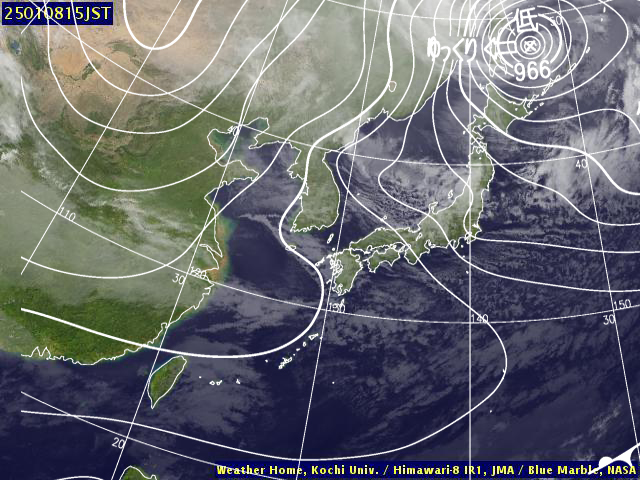 | 地上(高知大学気象情報頁赤外画像と気象庁速報天気図を合成) | |||