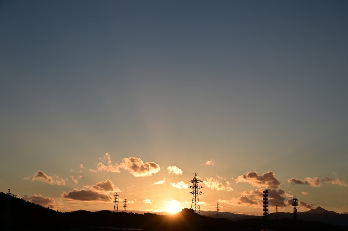 | 日没前に積雲の光芒 16:54 西南西 70mm |