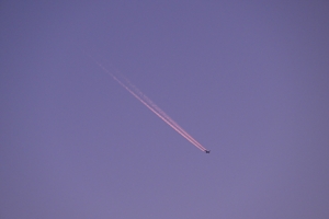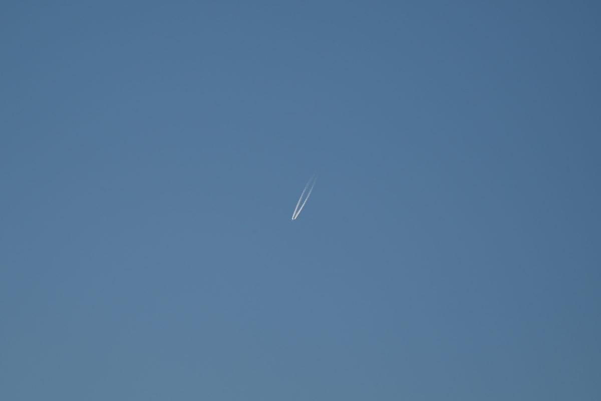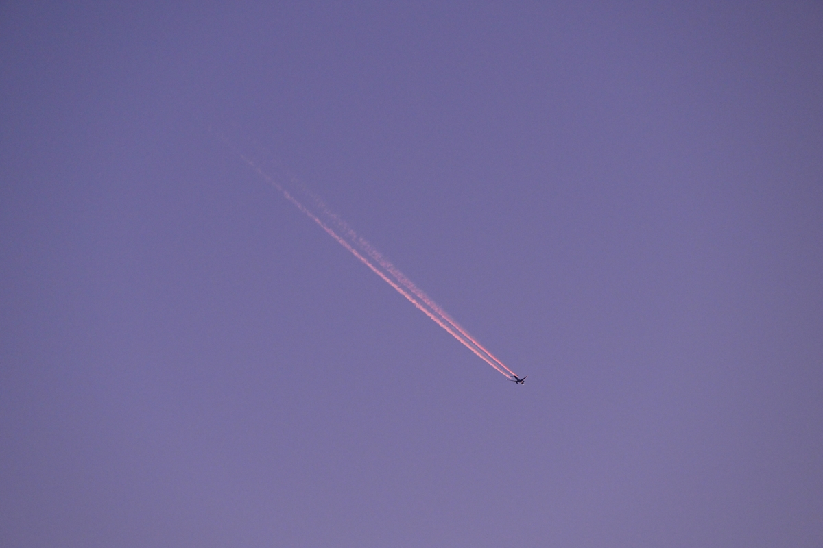 日没後の赤い飛行機雲 17:21 南西 400mm |